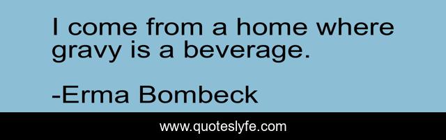 This page presents the quote "I come from a home where gravy is a beverage.". Author of this quote is Erma Bombeck. .