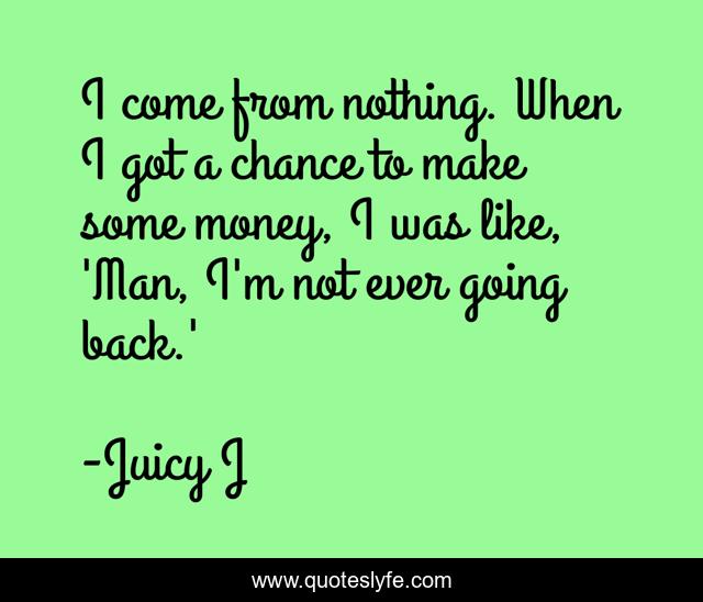 This page presents the quote "I come from nothing. When I got a chance to make some money, I was like, 'Man, I'm not ever going back.'". Author of this quote is Juicy J. This quote is about nothing, money, man,.