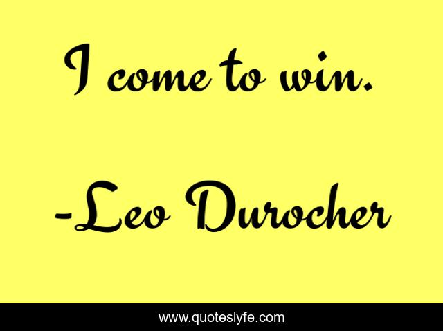 This page presents the quote "I come to win.". Author of this quote is Leo Durocher. This quote is about win, come,.
