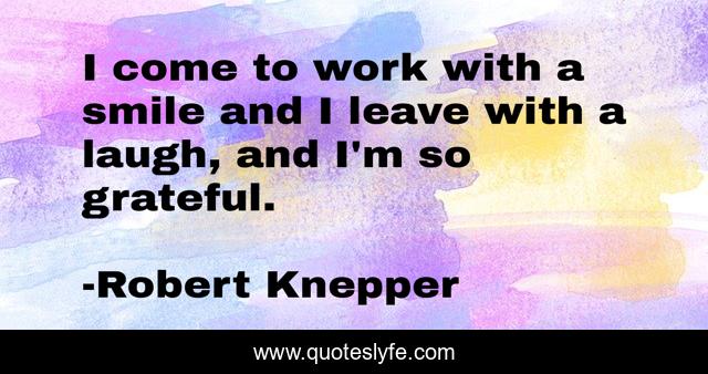 This page presents the quote "I come to work with a smile and I leave with a laugh, and I'm so grateful.". Author of this quote is Robert Knepper. This quote is about work, grateful, laugh,.