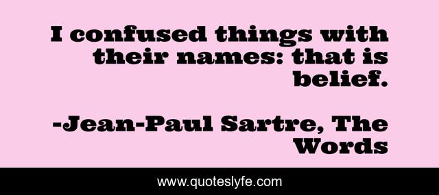 This page presents the quote "I confused things with their names: that is belief.". Author of this quote is Jean-Paul Sartre, The Words. This quote is about belief, names,.