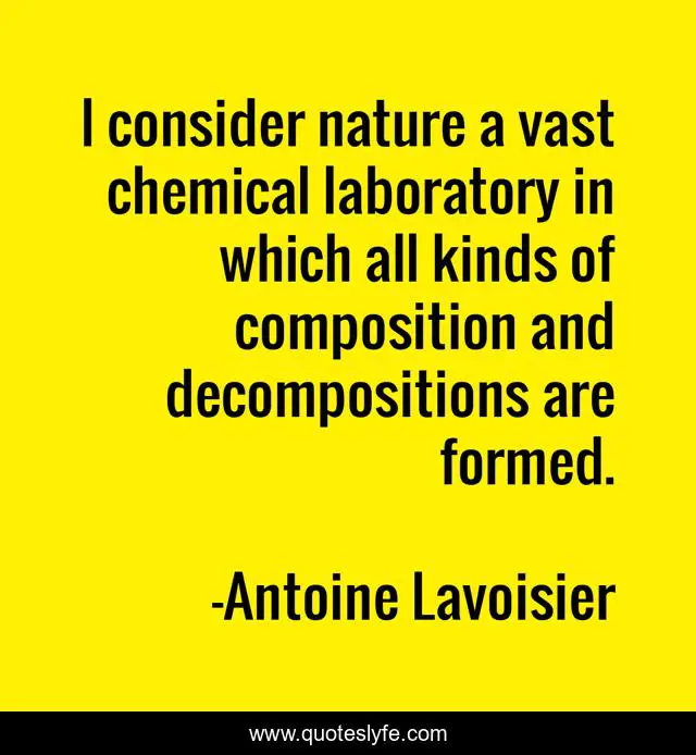 "Antoine Lavoisier Quotes." Quoteslyfe.com, 2025. Mon. 08 Dec. 2025. <https://www.quoteslyfe.com/quote/I-consider-nature-a-vast-chemical-laboratory-292214>.