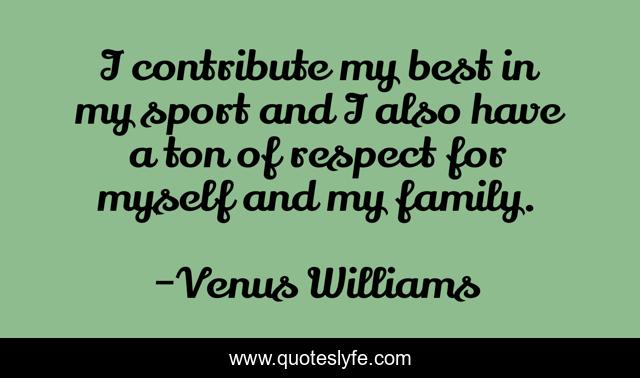 This page presents the quote "I contribute my best in my sport and I also have a ton of respect for myself and my family.". Author of this quote is Venus Williams. This quote is about myself, family, best,.