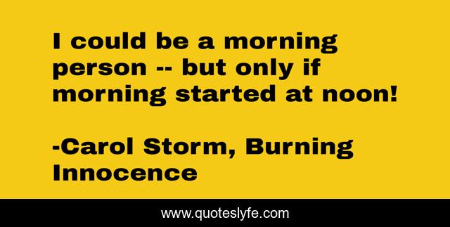 "Carol Storm, Burning Innocence Quotes." Quoteslyfe.com, 2025. Sat. 06 Dec. 2025. <https://www.quoteslyfe.com/quote/I-could-be-a-morning-person-but-217179>.