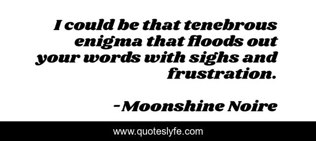 This page presents the quote "I could be that tenebrous enigma that floods out your words with sighs and frustration.". Author of this quote is Moonshine Noire. This quote is about frustration, murky, poetry, dark, sighs, enigma, words, lyrical-prose,.