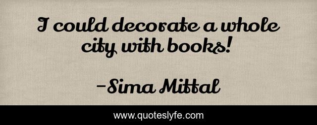 This page presents the quote "I could decorate a whole city with books!". Author of this quote is Sima Mittal. This quote is about city, books,.