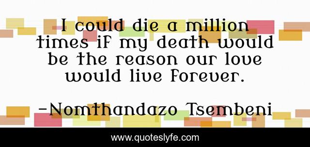 This page presents the quote "I could die a million times if my death would be the reason our love would live forever.". Author of this quote is Nomthandazo Tsembeni. This quote is about forever, death, love, sacrifice, affection,.