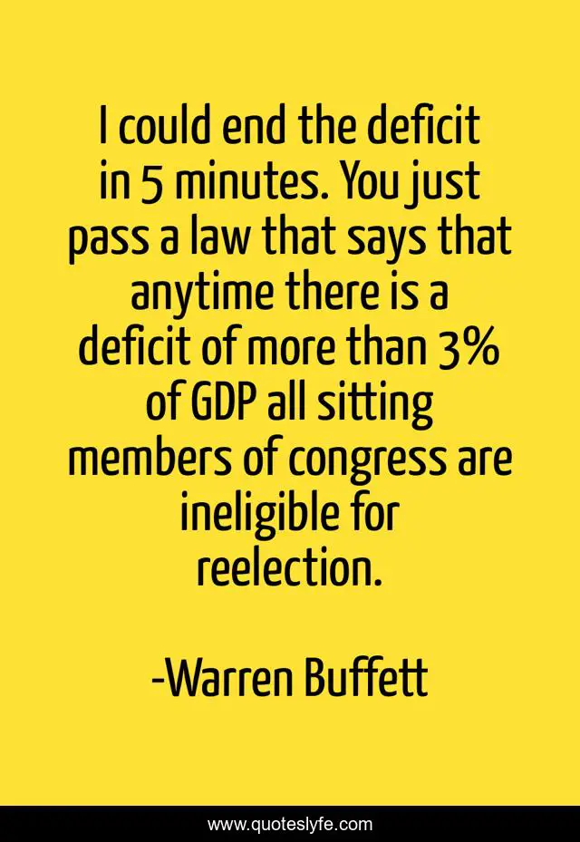 This page presents the quote "I could end the deficit in 5 minutes. You just pass a law that says that anytime there is a deficit of more than 3% of GDP all sitting members of congress are ineligible for reelection.". Author of this quote is Warren Buffett. .