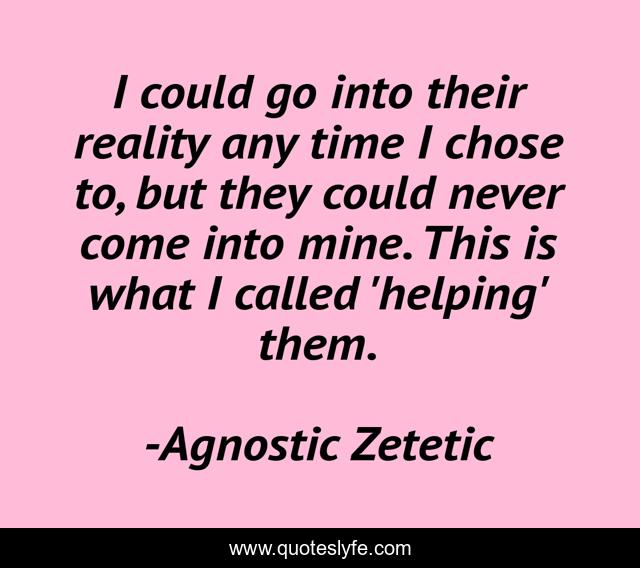 "Agnostic Zetetic Quotes." Quoteslyfe.com, 2025. Fri. 05 Dec. 2025. <https://www.quoteslyfe.com/quote/I-could-go-into-their-reality-any-102846>.