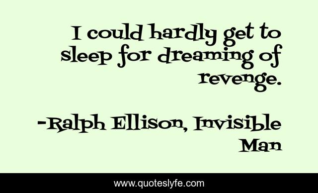 This page presents the quote "I could hardly get to sleep for dreaming of revenge.". Author of this quote is Ralph Ellison, Invisible Man. This quote is about ralph-ellison, fiction, revenge, invisible-man,.