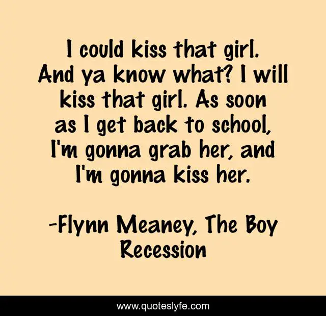 "Flynn Meaney, The Boy Recession Quotes." Quoteslyfe.com, 2025. Sun. 07 Dec. 2025. <https://www.quoteslyfe.com/quote/I-could-kiss-that-girl-And-ya-204086>.
