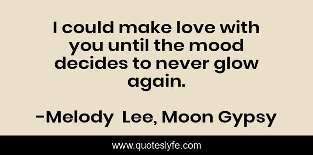 This page presents the quote "I could make love with you until the mood decides to never glow again.". Author of this quote is Melody Lee, Moon Gypsy. This quote is about relationships, love, poetry, moon, passion, affection,.