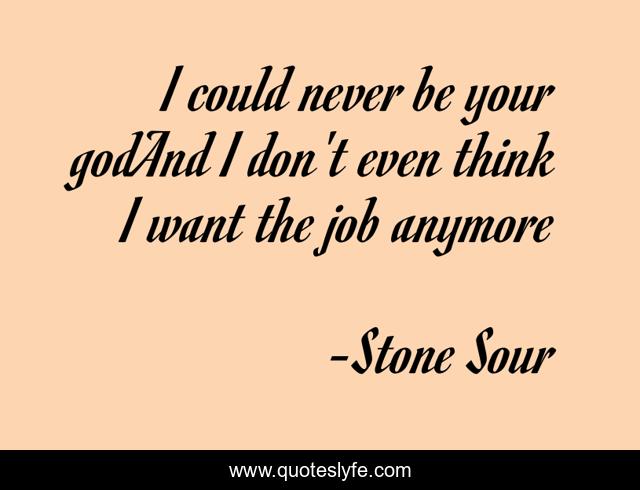 This page presents the quote "I could never be your godAnd I don't even think I want the job anymore". Author of this quote is Stone Sour. This quote is about music, leader, lyrics,.
