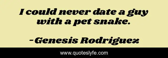 This page presents the quote "I could never date a guy with a pet snake.". Author of this quote is Genesis Rodriguez. This quote is about guy, snake,.