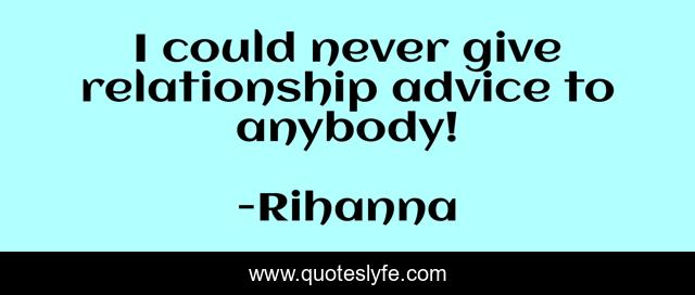 This page presents the quote "I could never give relationship advice to anybody!". Author of this quote is Rihanna. This quote is about advice, give,.