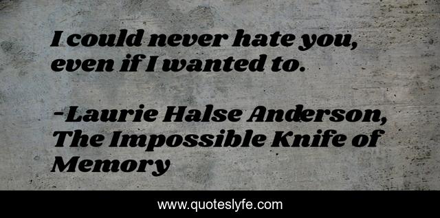 "Laurie Halse Anderson, The Impossible Knife of Memory Quotes." Quoteslyfe.com, 2025. Fri. 05 Dec. 2025. <https://www.quoteslyfe.com/quote/I-could-never-hate-you-even-if-163575>.
