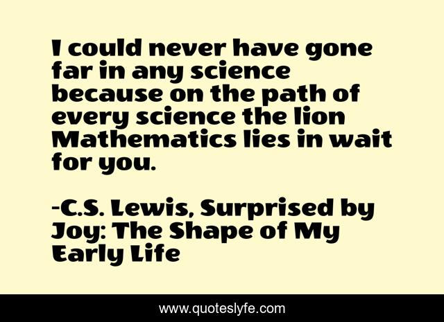 This page presents the quote "I could never have gone far in any science because on the path of every science the lion Mathematics lies in wait for you.". Author of this quote is C.S. Lewis, Surprised by Joy: The Shape of My Early Life. This quote is about mathematics, arithmetic,.