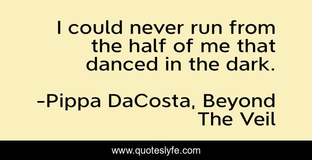 This page presents the quote "I could never run from the half of me that danced in the dark.". Author of this quote is Pippa DaCosta, Beyond The Veil. This quote is about dance, dark, run,.