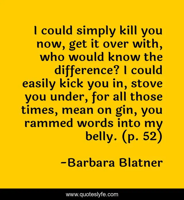 "Barbara Blatner Quotes." Quoteslyfe.com, 2025. Sat. 06 Dec. 2025. <https://www.quoteslyfe.com/quote/I-could-simply-kill-you-now-get-123776>.