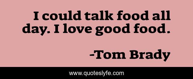 This page presents the quote "I could talk food all day. I love good food.". Author of this quote is Tom Brady. This quote is about good, love, day, affection,.