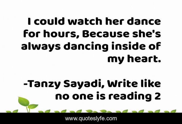 "Tanzy Sayadi, Write like no one is reading 2 Quotes." Quoteslyfe.com, 2025. Sat. 06 Dec. 2025. <https://www.quoteslyfe.com/quote/I-could-watch-her-dance-for-hours-81550>.