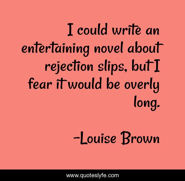 This page presents the quote "I could write an entertaining novel about rejection slips, but I fear it would be overly long.". Author of this quote is Louise Brown. This quote is about write, rejection, long,.