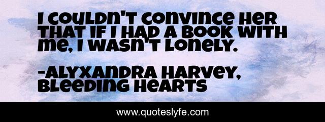 This page presents the quote "I couldn't convince her that if I had a book with me, I wasn't lonely.". Author of this quote is Alyxandra Harvey, Bleeding Hearts. .