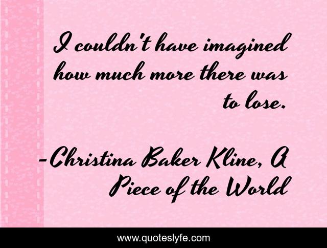 This page presents the quote "I couldn't have imagined how much more there was to lose.". Author of this quote is Christina Baker Kline, A Piece of the World. .