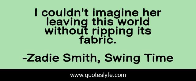 This page presents the quote "I couldn't imagine her leaving this world without ripping its fabric.". Author of this quote is Zadie Smith, Swing Time. .