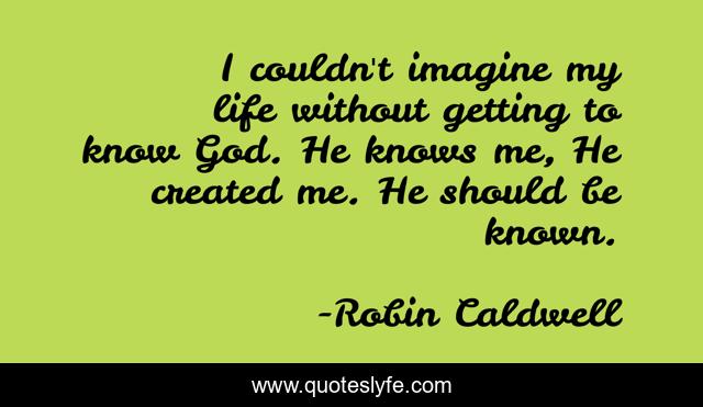This page presents the quote "I couldn't imagine my life without getting to know God. He knows me, He created me. He should be known.". Author of this quote is Robin Caldwell. This quote is about faith, faithfulness, christian-living, knowing-god,.