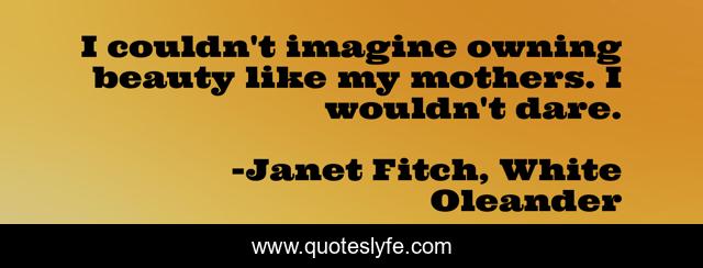 This page presents the quote "I couldn't imagine owning beauty like my mothers. I wouldn't dare.". Author of this quote is Janet Fitch, White Oleander. This quote is about beauty, dare, mother,.