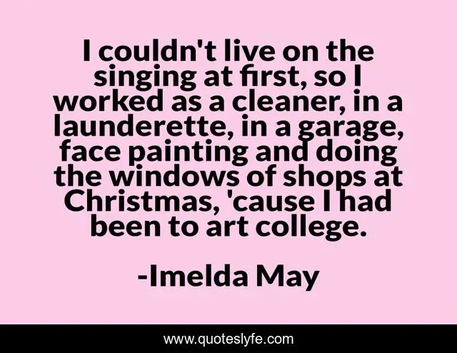 This page presents the quote "I couldn't live on the singing at first, so I worked as a cleaner, in a launderette, in a garage, face painting and doing the windows of shops at Christmas, 'cause I had been to art college.". Author of this quote is Imelda May. This quote is about art, college, painting,.