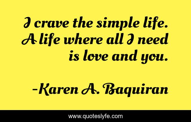 This page presents the quote "I crave the simple life. A life where all I need is love and you.". Author of this quote is Karen A. Baquiran. This quote is about love, loveyourselfmovement, romantic, affection,.
