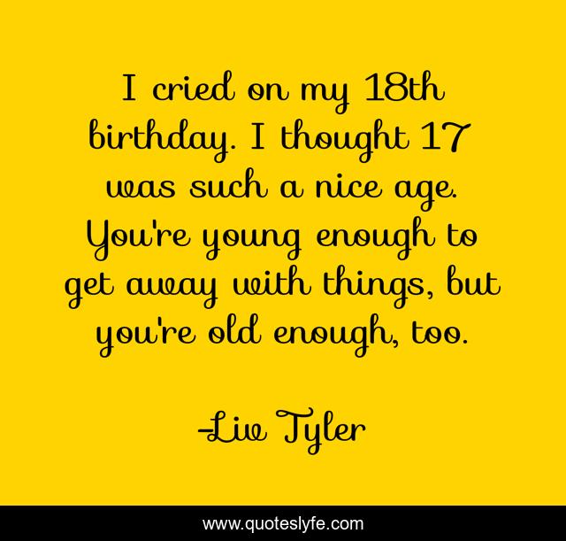 This page presents the quote "I cried on my 18th birthday. I thought 17 was such a nice age. You're young enough to get away with things, but you're old enough, too.". Author of this quote is Liv Tyler. This quote is about thought, age, nice,.