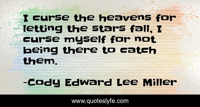 This page presents the quote "I curse the heavens for letting the stars fall, I curse myself for not being there to catch them.". Author of this quote is Cody Edward Lee Miller. This quote is about wishes, love, stars, affection, hope,.