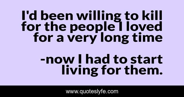 This page presents the quote "I'd been willing to kill for the people I loved for a very long time". Author of this quote is now I had to start living for them.. .