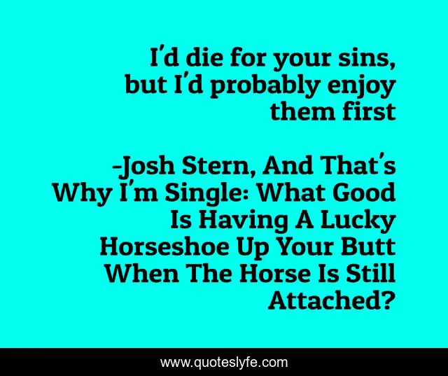 "Josh Stern, And That's Why I'm Single: What Good Is Having A Lucky Horseshoe Up Your Butt When The Horse Is Still Attached? Quotes." Quoteslyfe.com, 2025. Sun. 07 Dec. 2025. <https://www.quoteslyfe.com/quote/I-d-die-for-your-sins-but-250071>.