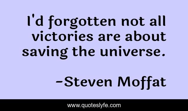 This page presents the quote "I'd forgotten not all victories are about saving the universe.". Author of this quote is Steven Moffat. This quote is about doctor-who, inspiring,.