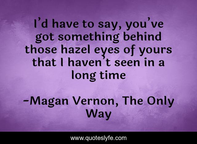 This page presents the quote "I’d have to say, you’ve got something behind those hazel eyes of yours that I haven’t seen in a long time". Author of this quote is Magan Vernon, The Only Way. This quote is about new-adult-romance, new-adult-contemporary-romance, eyes, hazel-eyes,.