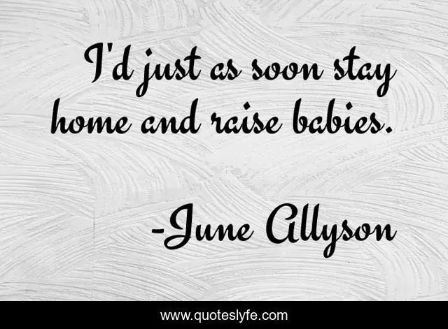 This page presents the quote "I'd just as soon stay home and raise babies.". Author of this quote is June Allyson. This quote is about home, just, stay,.
