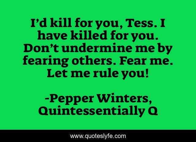 This page presents the quote "I’d kill for you, Tess. I have killed for you. Don’t undermine me by fearing others. Fear me. Let me rule you!". Author of this quote is Pepper Winters, Quintessentially Q. This quote is about bone-deep, romance, dominant,.