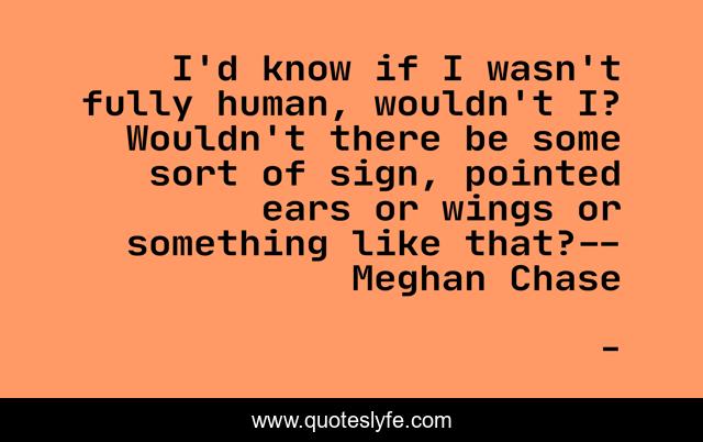 This page presents the quote "I'd know if I wasn't fully human, wouldn't I? Wouldn't there be some sort of sign, pointed ears or wings or something like that?--Meghan Chase". Author of this quote is . .