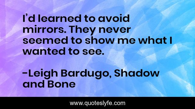 "Leigh Bardugo, Shadow and Bone Quotes." Quoteslyfe.com, 2025. Sat. 13 Dec. 2025. <https://www.quoteslyfe.com/quote/I-d-learned-to-avoid-mirrors-They-142551>.