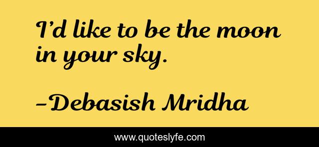 This page presents the quote "I’d like to be the moon in your sky.". Author of this quote is Debasish Mridha. This quote is about philosophy, debasish-mridha, moon-in-your-sky, quotes, debasish-mridha-md, inspirational, enthusiasm, wistful,.