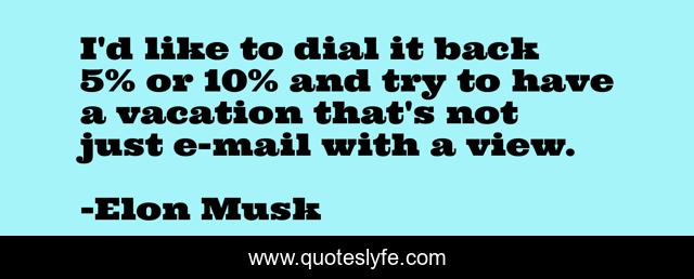 This page presents the quote "I'd like to dial it back 5% or 10% and try to have a vacation that's not just e-mail with a view.". Author of this quote is Elon Musk. This quote is about try, vacation, view,.