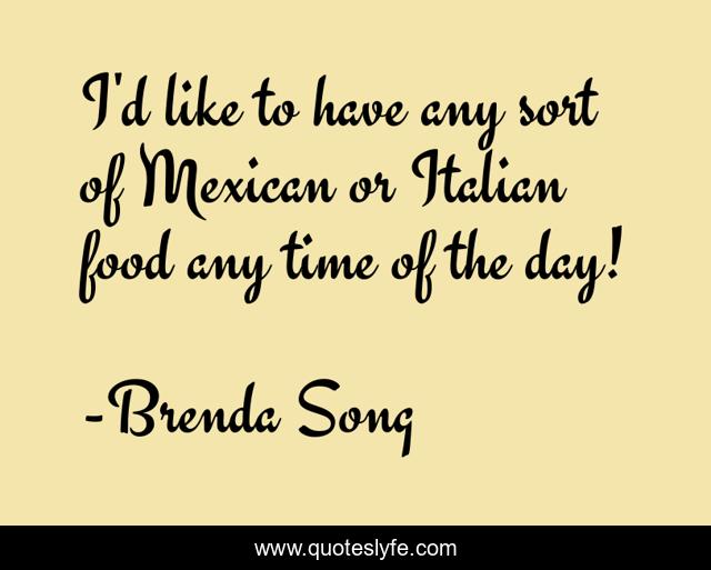 This page presents the quote "I'd like to have any sort of Mexican or Italian food any time of the day!". Author of this quote is Brenda Song. This quote is about mexican, day, time,.