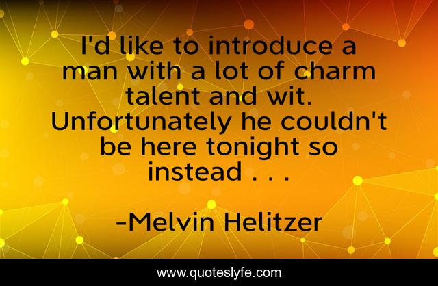 This page presents the quote "I'd like to introduce a man with a lot of charm talent and wit. Unfortunately he couldn't be here tonight so instead . . .". Author of this quote is Melvin Helitzer. This quote is about introductions, openers,.