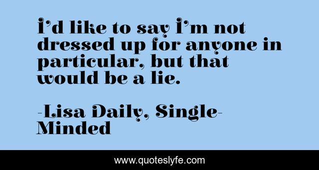 This page presents the quote "I’d like to say I’m not dressed up for anyone in particular, but that would be a lie.". Author of this quote is Lisa Daily, Single-Minded. This quote is about funny, falling-in-love, beach-read, romance, romance-novels-books, falling-in-love-again-funny, romance-novels, dressed-up, dating,.
