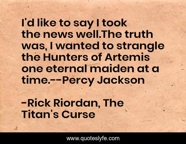 This page presents the quote "I'd like to say I took the news well.The truth was, I wanted to strangle the Hunters of Artemis one eternal maiden at a time.--Percy Jackson". Author of this quote is Rick Riordan, The Titan's Curse. .
