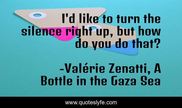 This page presents the quote "I'd like to turn the silence right up, but how do you do that?". Author of this quote is Valérie Zenatti, A Bottle in the Gaza Sea. .